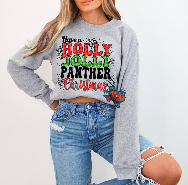 Have a Holly Jolly Panther Christmas on a black, charcoal, ash grey, or white tee or crewneck sweater!